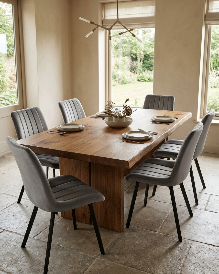 Jedilni stol Velvet Grey. Vodo-odbojna Velvet tkanina: Posebna zaščita poskrbi, da tekočina ostane na površini v obliki kapljic. Brez skrbi pri nenamernem politju – le obrišete s krpo!