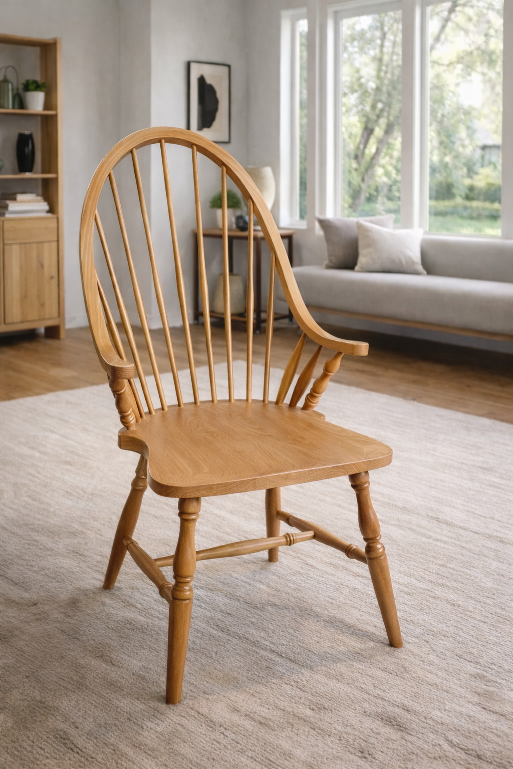 je prava MASIVNA klasika, ki v vaš prostor obuja brezčasno lepoto in vintage eleganco. Z izjemno visokim hrbtiščem (110 cm) nudi nadstandardno oporo in udobje, ki ga v modernih stolih težko najdete. Idealen je za ljubitelje retro sloga, ki iščejo kakovostno izdelavo in topel videz masivnega lesa.